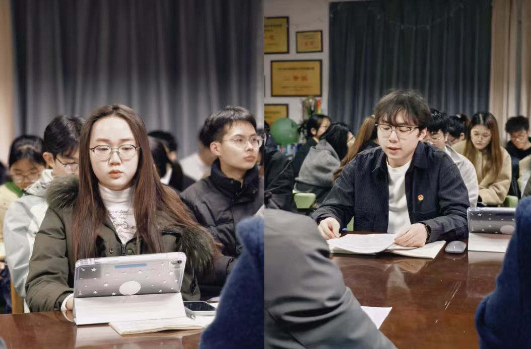 在主题学习环节,金诚杰做了《聚焦专创融合 勇担时代使命》的“挑战杯进院系”的专项主题宣讲。他重点讲解了“挑战杯”赛事要点,全面讲解备赛要素与参赛指南。在工作布置环节,刘睿从党建带团建推进团学组织优化、学风建设、本科生全员开展科研立项训练、本研协同的五育并举活动体系、科普志愿服务体系建设、“资源人”形象建设等方面布置了重点工作。