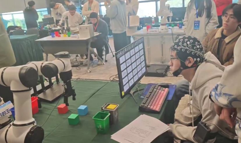 在整个参赛团队前期的不懈努力下,他们在 “算法正确率”“设备执行流畅度” 等关键考核指标上表现亮眼。最终,情绪识别组 “203 的王” 队跻身该赛道总排名前五,脑控机械臂组 “YL 队” 以 81.36 分位列赛道第八,打破了赛前硕博士团队垄断排名前列的格局。