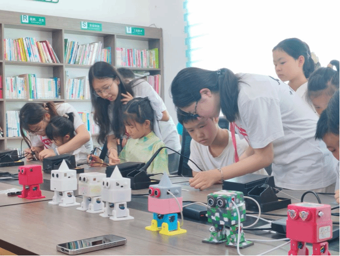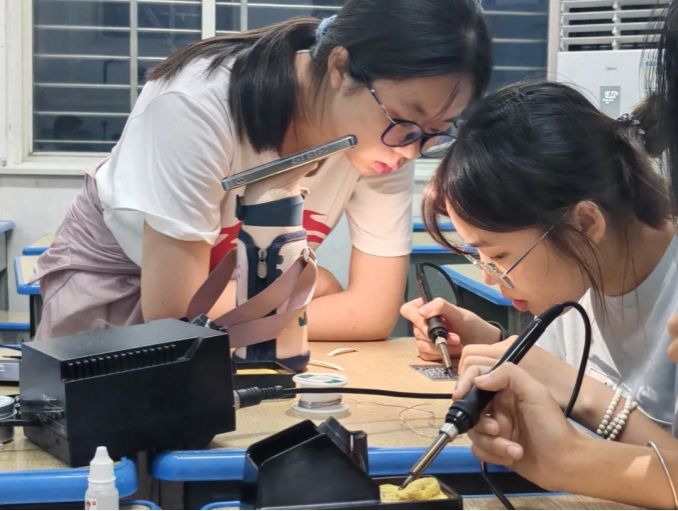 在支教队成员的分组指导下,孩子们亲手完成了电路板元件的焊接实践,操作3D打印机,制作出简易机器人模型,并体验了通过手机蓝牙远程操控机器人的乐趣。当孩子们看到3D打印机喷头来回移动,将融化的塑料层层堆叠成精巧的指尖陀螺时,孩子们无不屏息凝神,瞪大眼睛发出阵阵惊呼!科技的魔力深深震撼了每一颗幼小的心灵。