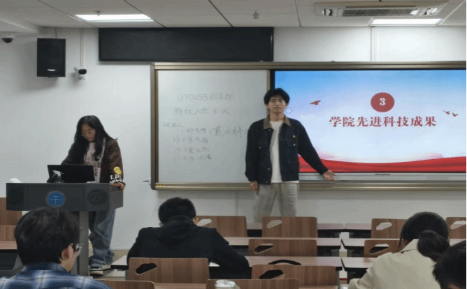紧接着,王子豪同学结合学院特色,向大家详细介绍了学院在先进科技领域的研究成果,从人工智能、电子信息技术到地质科学的创新突破,不仅展示了学院的科研实力,更激发了团员们投身科技报国、助力国家发展的热情。