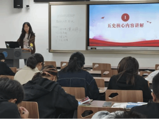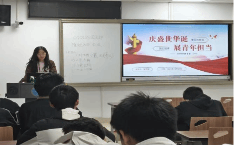 团支书走上讲台,围绕“五史”(党史、新中国史、改革开放史、社会主义发展史、中华民族发展史)展开简单概述,讲解了一些重大事件及其历史意义,让团员们深刻认识到祖国发展的艰辛历程与伟大成就,进一步坚定了听党话、跟党走的信念。