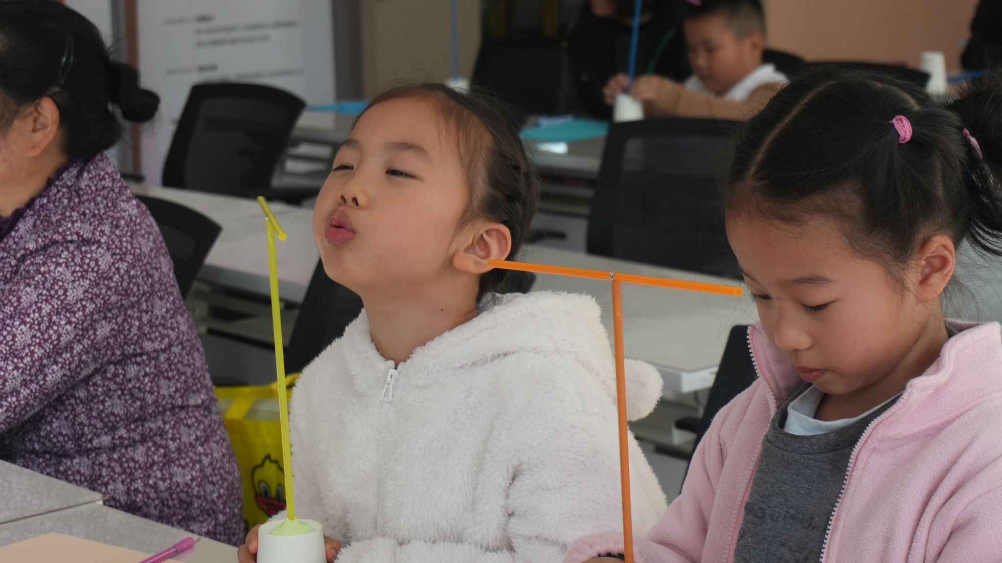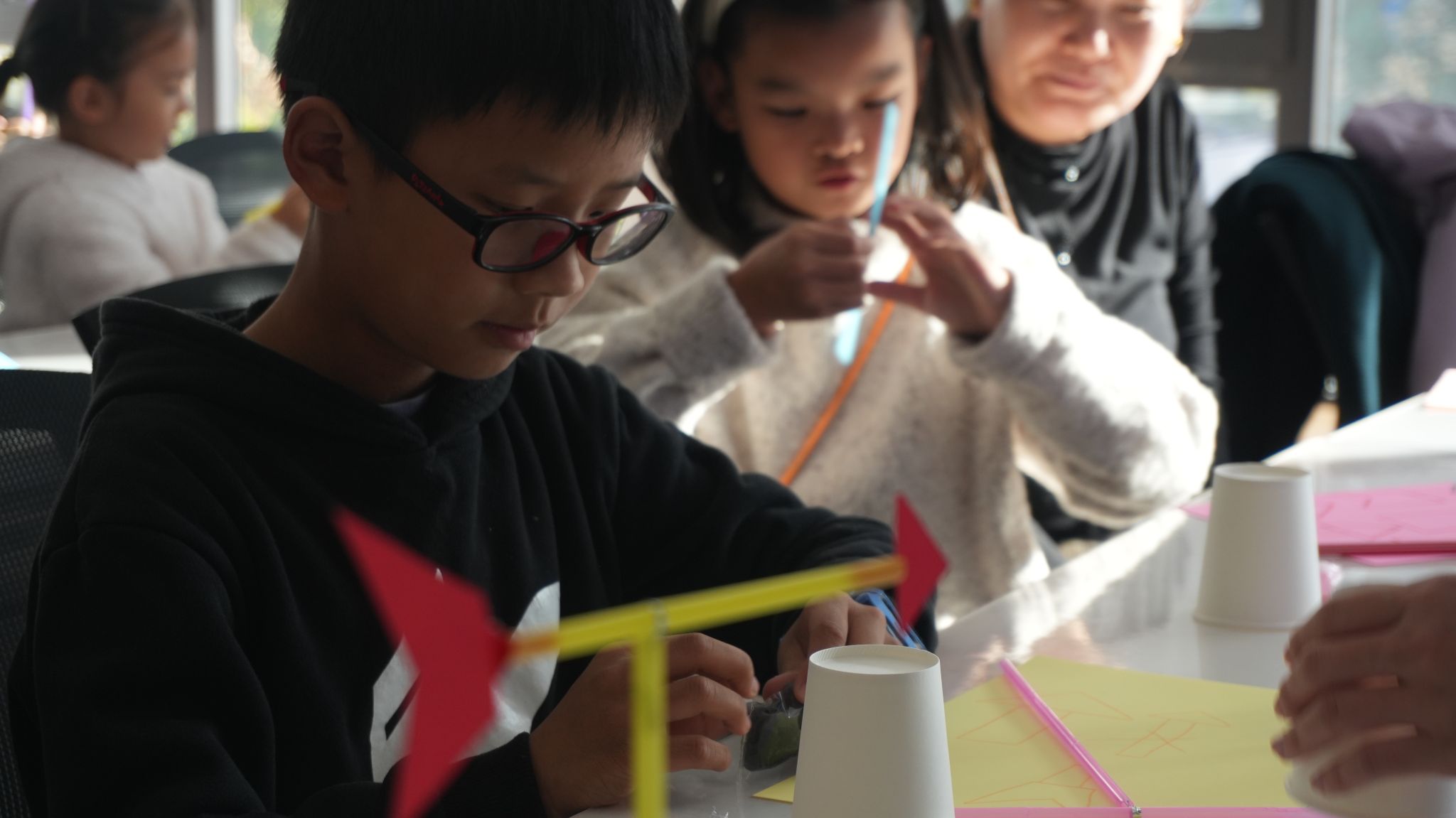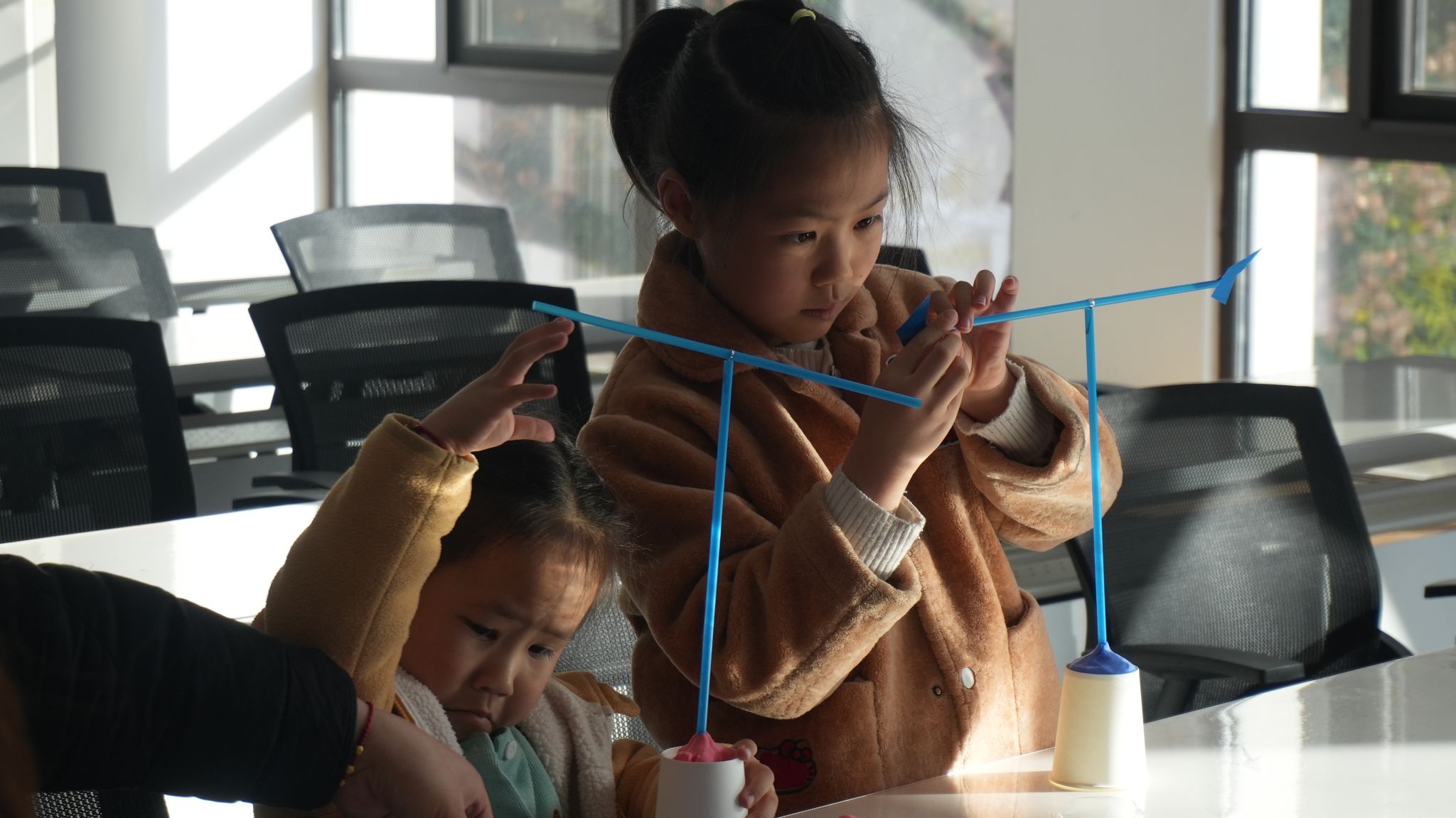 “风向标要怎么才能准确指示风向?”“纸杯底座要固定多牢才不会倒?”志愿者们先以简单易懂的演示,拆解风向标制作的核心原理,再手把手指导孩子们一步步操作。
