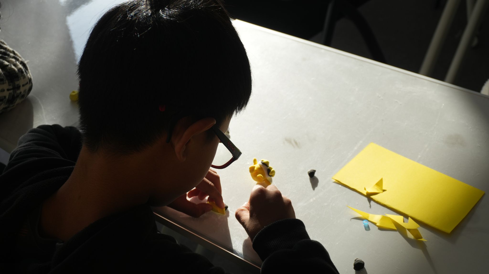 志愿者们也加入其中,与孩子们一同揉捏、一同欢笑,指尖的温度融化了初冬的寒意,一块块小小的橡皮泥,串联起志愿者与孩子们的温情,也让科普的快乐延续到最后一刻。