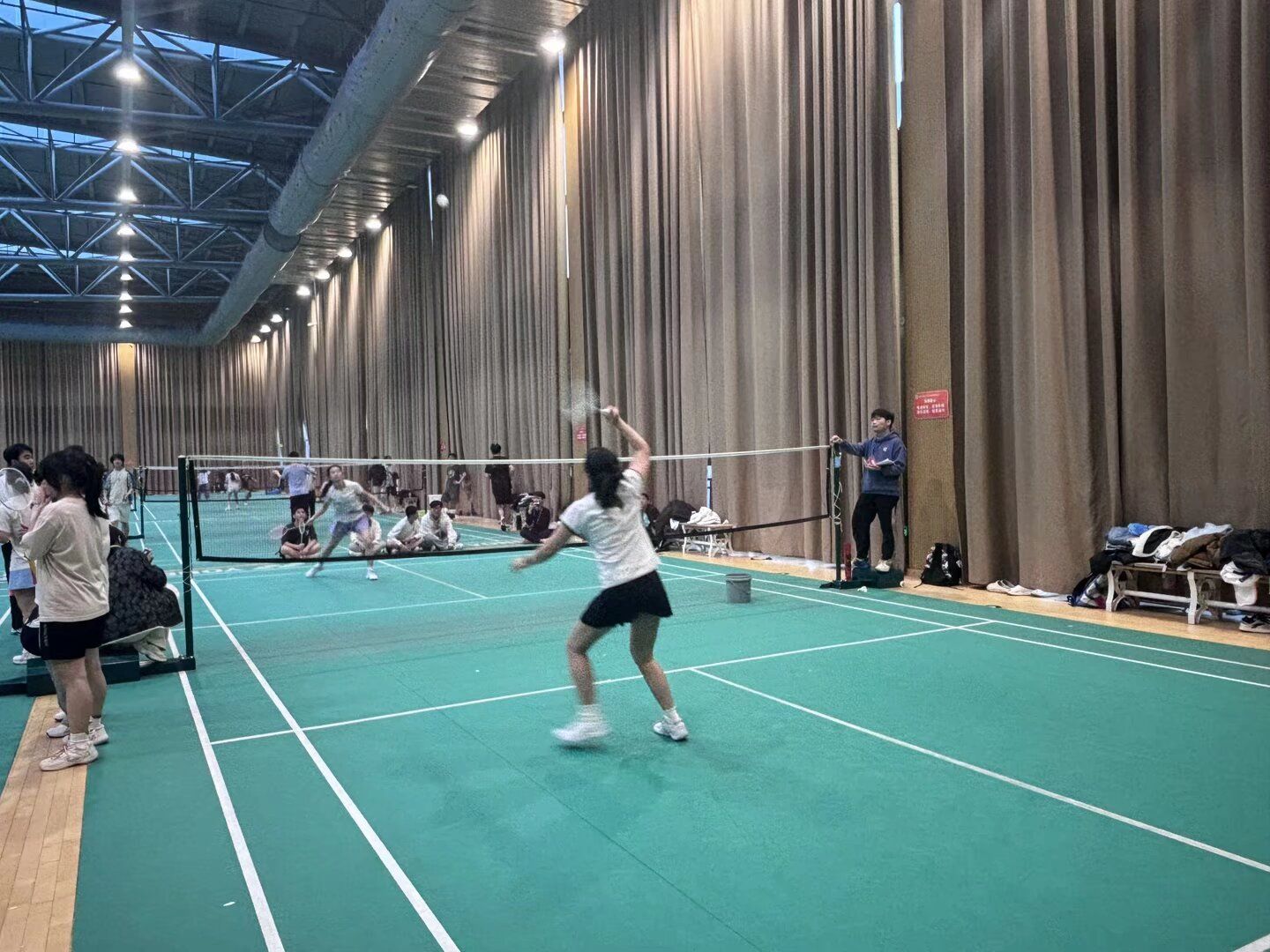 赛场之上,白羽如梭,每一次凌厉的扣杀尽显昂扬斗志,每一次默契的扑救诠释团队力量。男单的果敢交锋、女单的坚韧对决、男双女双的协同共进、混双的师生联动……比分交替上升,呐喊此起彼伏。无论是小组赛的稳扎稳打,还是淘汰赛的全力冲刺,每一分都凝聚专注,每一局都见证热爱。