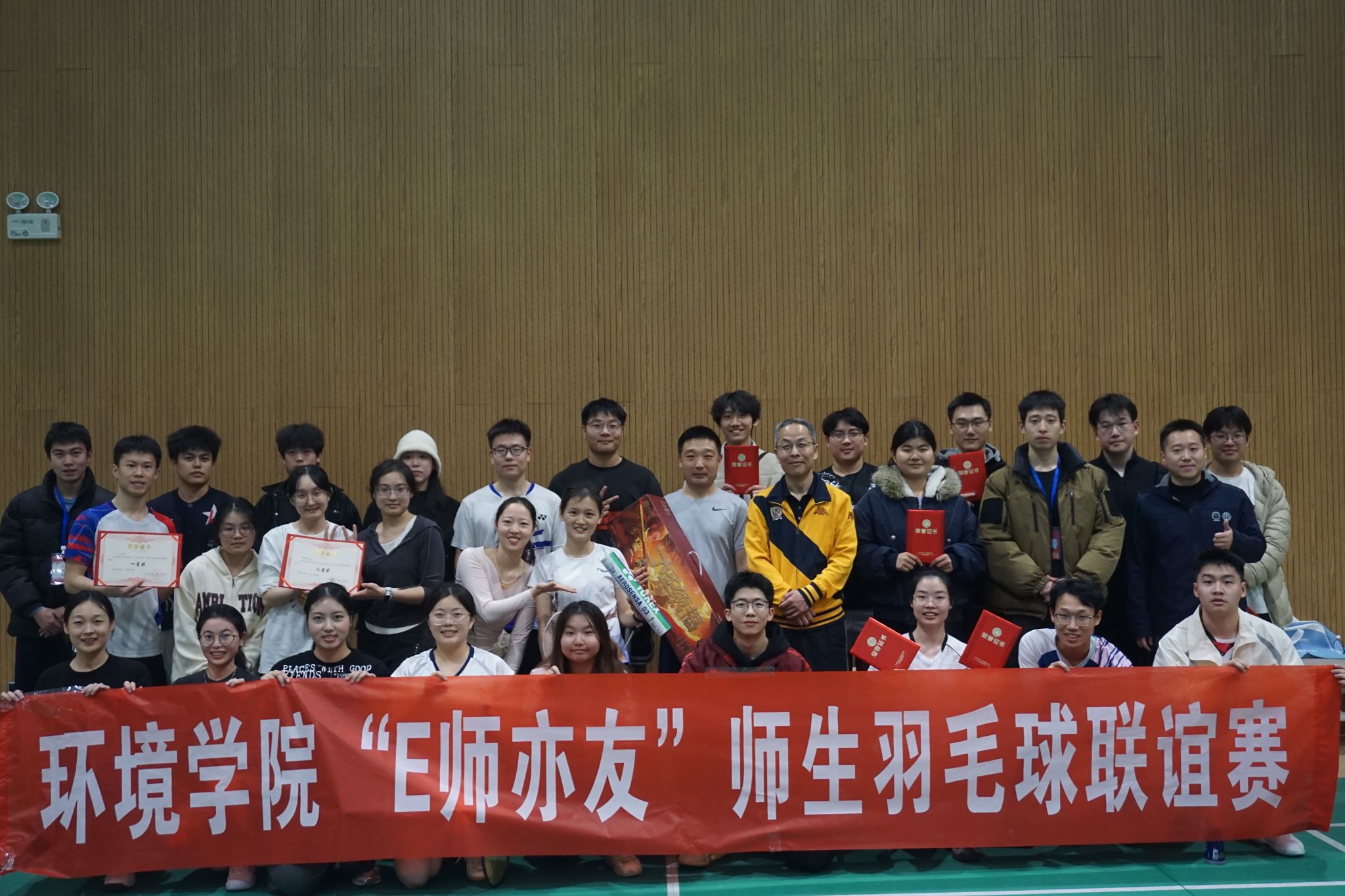 (通讯员 李媛 摄影 王宇辰、陈静怡、刘婷)白羽翩跹,师生同心。12月11日下午,由环境学院团委和工会举办的“E师亦友”师生联谊羽毛球赛在未来城体育馆举行。师生们以球会友、以赛传情,在挥拍逐梦间展现风采,于攻防交替中凝聚温情,共同书写了一段充满活力与情谊的竞技篇章。
