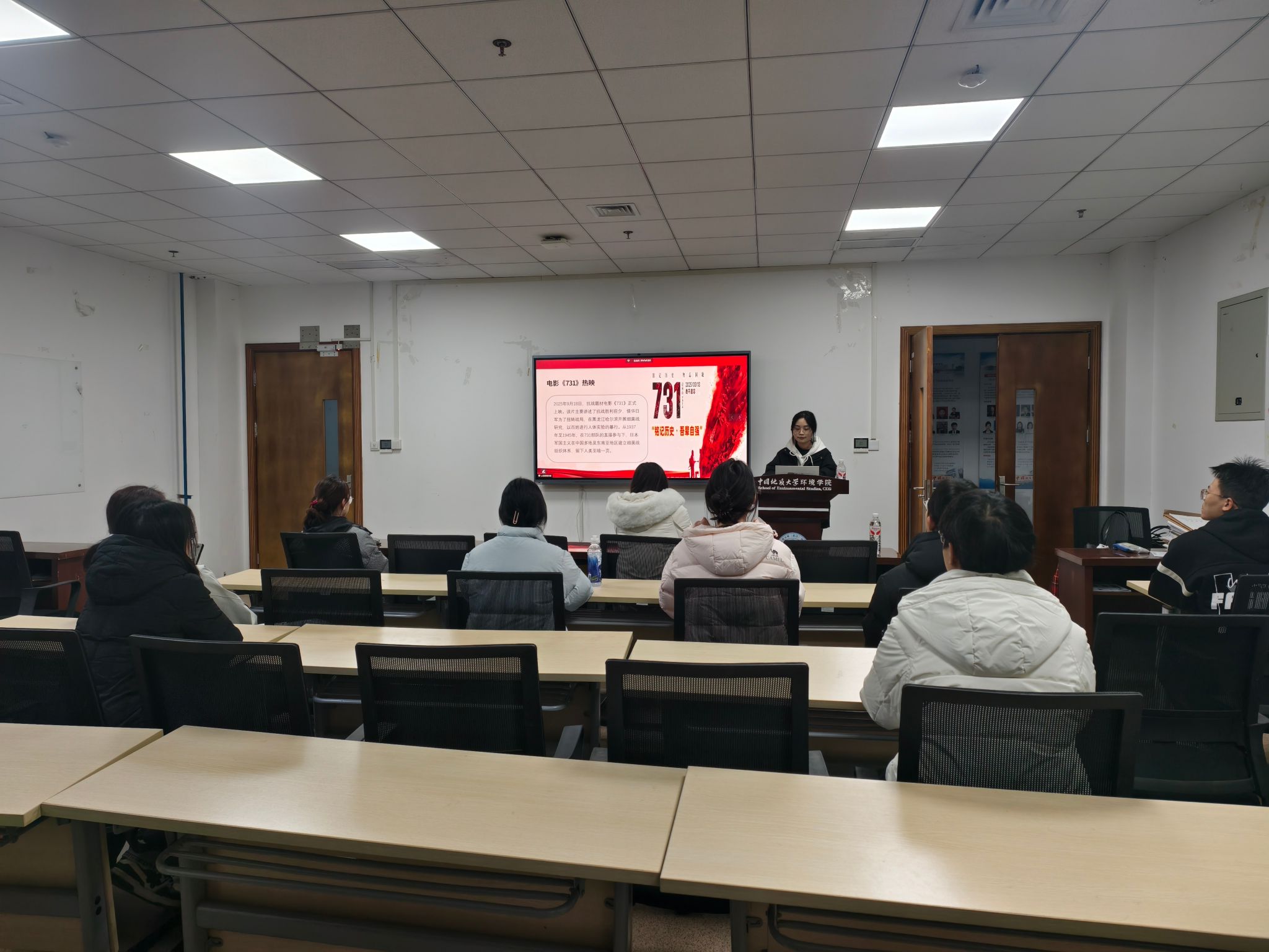 12月13日晚,团支部展开“缅怀革命先烈,传承红色基因”为主题的理论学习。团支书陈紫如讲授团课,详细介绍南京大屠杀历史真相与国家公祭日设立初衷,阐释“以国之名祭奠,向史而新前行”的深远内涵,通过讲述抗战时期英雄人物的感人事迹,重温革命岁月,激发团员的爱国主义情怀。支部成员展开交流,聚焦今年上映的红色电影《731》《南京照相馆》等,深入了解抗战时期革命先辈的艰辛与伟大,深化爱国主义教育,推动红色精神转化为实际行动。