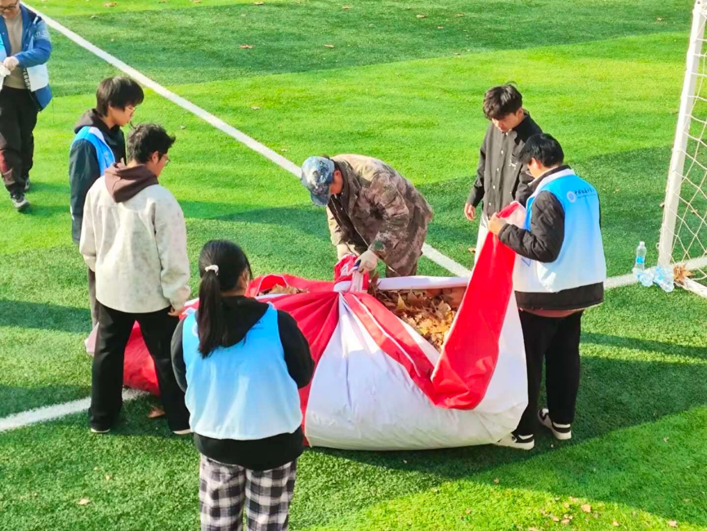 志愿者们身着统一马甲、佩戴工作牌,在集合点有序签到后,分组奔赴各自“战场”。道路组18名同学默契配合,将校区主干道的落叶清扫归拢,让小径恢复通畅整洁;12名走廊组志愿者细致清扫教学楼公共区域,擦拭楼梯扶手、清理墙角杂物,让学习环境更舒心;湖边/草坪组8名同学化身“环境守护者”,弯腰捡拾垃圾并分类投放,让湖光山色间不见杂物踪影;统筹协调组全程穿梭各区域,做好工具分发回收与清洁验收,保障活动高效推进。3.5小时的坚守中,志愿者们分工协作、互帮互助,用汗水换来了校园环境的焕然一新。活动不仅改善了校园卫生状况,更强化了学子们的主人翁意识与环保责任感。不少参与者表示,亲身参与清洁后,更懂得珍惜校园环境的来之不易。