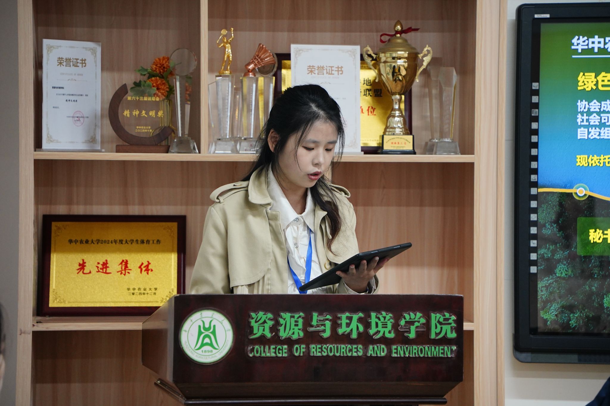 华中农业大学绿色协会会长王修函回顾协会23年来的发展历程,详细介绍组织架构与运行管理模式,并分享品牌活动的建设成效与社会影响。