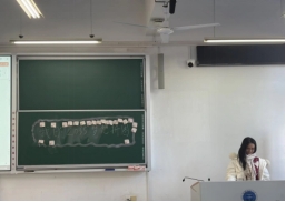 随后,在“消防安全教育”主题学习环节,黄慧敏同学系统讲解了消防安全核心知识,从火灾预防、初期处置到逃生技巧,内容全面且实用。为加深大家的理解与记忆,现场还开展了“你画我猜”消防安全主题互动游戏。同学们化身 “灵魂画手”,将消防器材、安全标识、逃生动作等内容生动呈现在黑板上,其他同学踊跃抢答。一幅幅趣味十足又充满意义的图画,既是对消防安全知识的再认识、再思考,也让“安全第一、防患未然”的理念在轻松愉悦的氛围中入脑入心,切实提升了团员们的安全防范意识与应急处置能力。