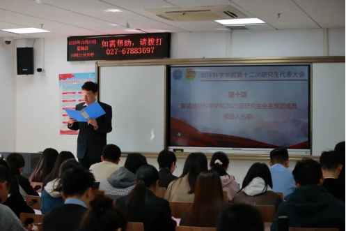 付世彭宣读地球科学学院2025届研究生会主席团成员候选人名单