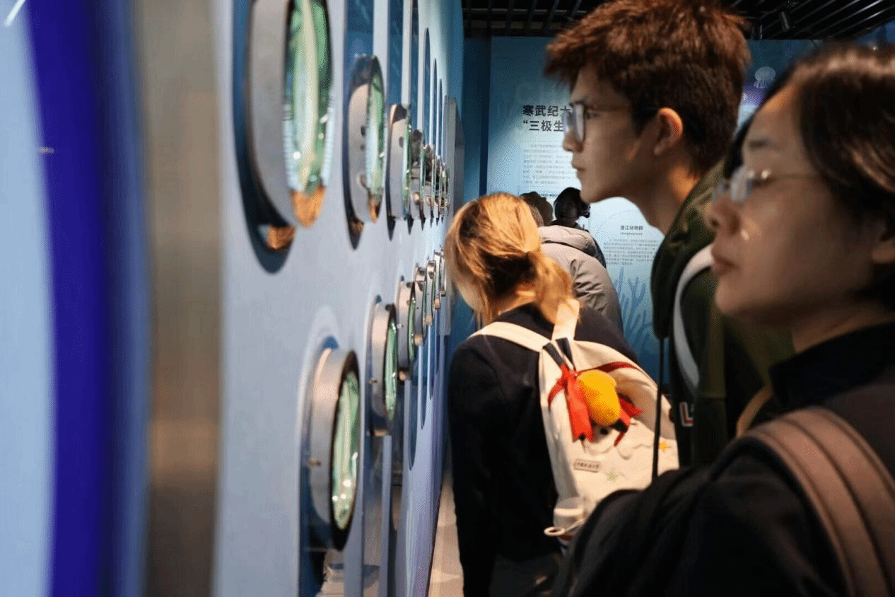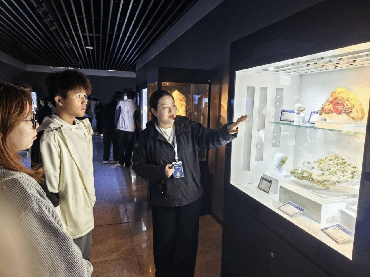 理论学习结束后,全体人员前往逸夫博物馆开展实践学习。在“化石油墙”展区,大家仔细观察古生物活动痕迹,从亿万年生命印记中感受地球生态演化的漫长与脆弱;在矿物标本展区,通过观察黄铁矿、蓝铜矿等珍贵矿石,加深了对地球资源的稀缺性与保护重要性的认识;在“生命起源与演化”展厅,大家沿着38亿年的生命演化脉络,了解从原始菌类到哺乳动物的兴衰历程,进一步领会“人与自然和谐共生”的深刻内涵。