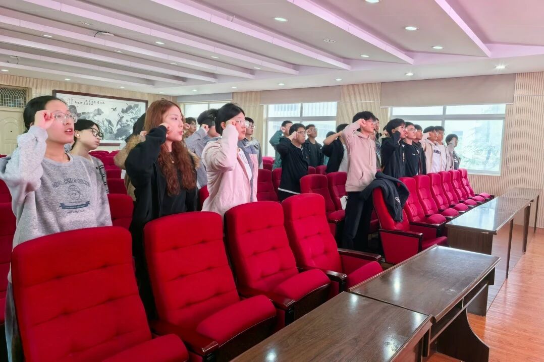 活动在校内理论学习环节中拉开帷幕。在05T255班团支书张烨坛的带领下,全体团员齐唱团歌、重温入团誓词,铿锵有力的誓言回荡在现场,进一步增强了团员们的组织认同感与责任担当意识。随后,同学们集中观看了《带着石头去认亲》《中国需要地质人》等系列宣传片。通过影像资料,同学们深切感受了地质工作的艰辛历程与时代价值。两位团员代表结合观影体会分享了心得,表达了投身地质事业的憧憬以及对当代地质工作意义的深入思考,为后续的实践探访奠定了坚实的思想基础。
