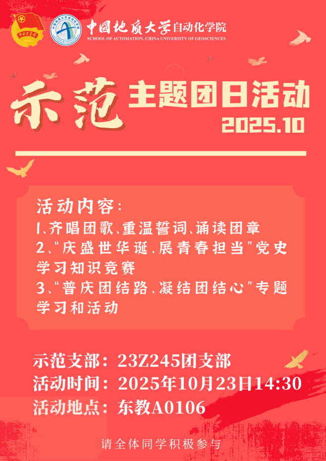 2025年10月23日,自动化学院在东教楼A0106举行十月示范主题团日活动,本次示范支部为23z245团支部,团委书记孙静、学生团委副书记雷晨以及全体本研新生团支部团支书、宣传委员、组织委员观摩并参与团日活动。