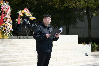 在庄严肃穆的氛围中,师生代表向革命烈士敬献花篮,深切缅怀先烈们的不朽功勋。院学生团委副书记夏益骏生动讲述了北伐独立团的英雄事迹,并结合个人参军入伍经历,呼吁经管青年传承英烈精神,以青春之力勇担时代重任。