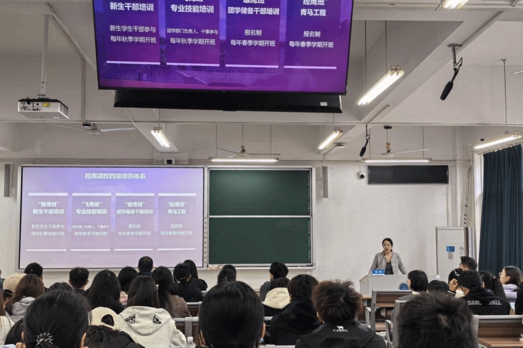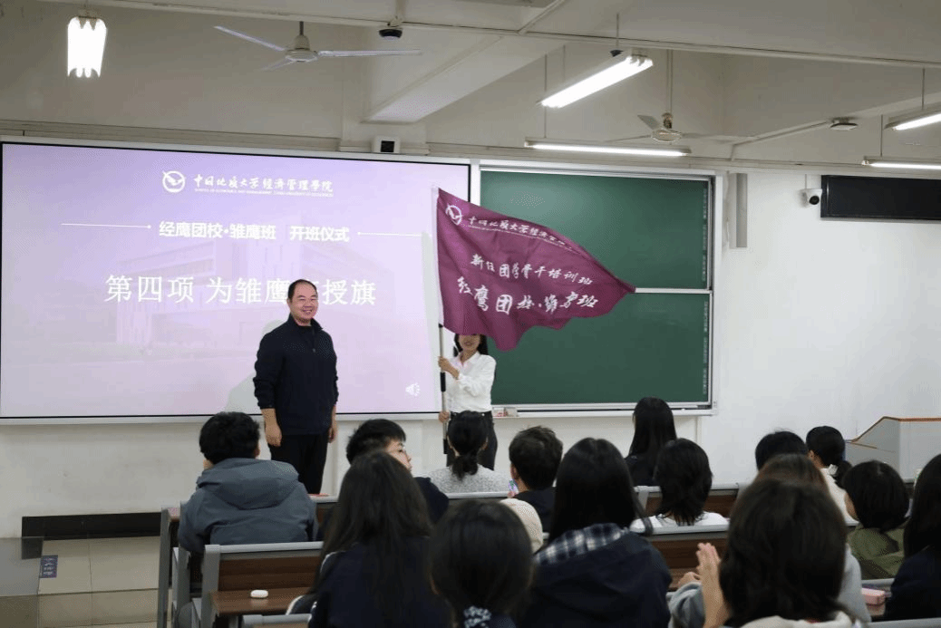(通讯员:刘恒宇、张梓焓 摄影:刘茂煊、颜含希)11月8日上午,经济管理学院经鹰团校新生学生骨干“雏鹰班”开班仪式在南望山校区北综楼203教室举行。学院党委副书记李纪亮,团委书记徐媛,2025级本科生辅导员彭少琪,全体新生班长、团支书及院团委、学生会实习生参加仪式。院团委办公室负责人刘恒宇主持仪式。