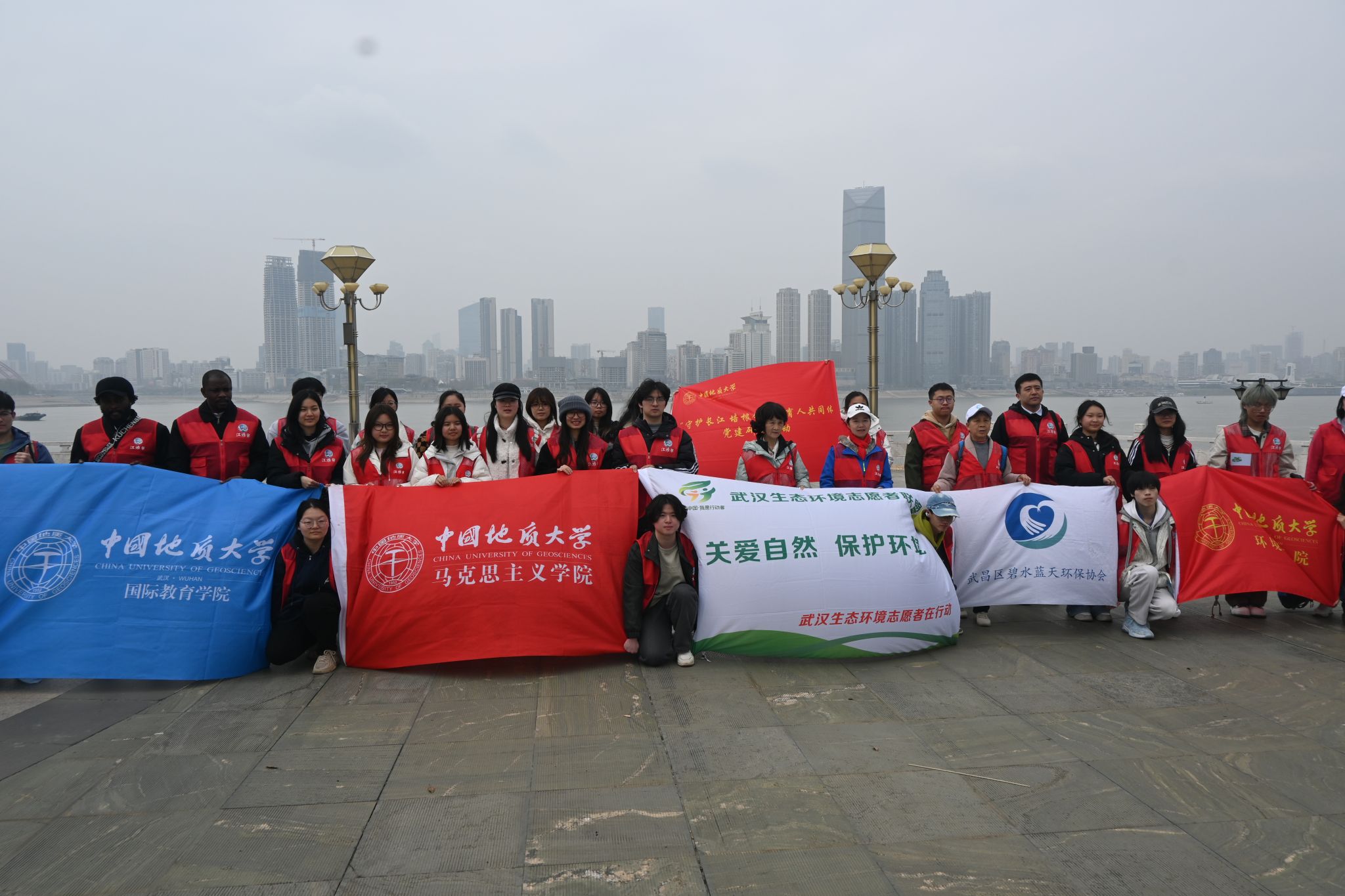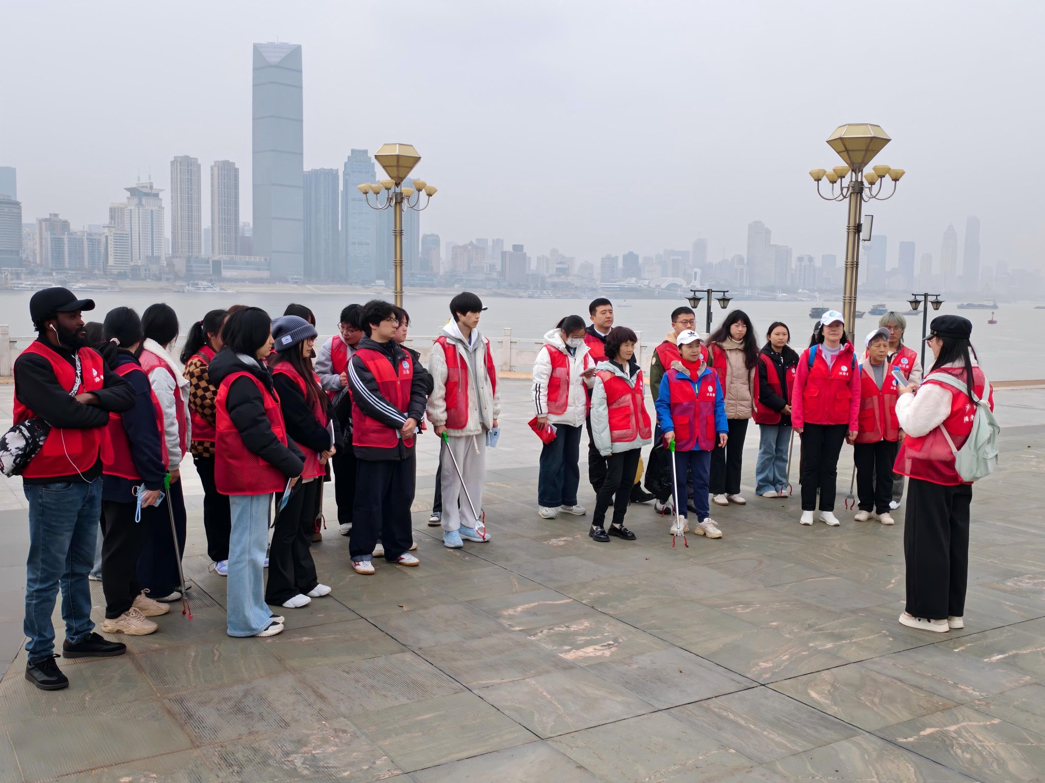 为深入学习贯彻习近平生态文明思想,全面落实习近平总书记关于长江大保护的重要讲话和重要指示批示精神,引领广大团员青年在社会实践中践行生态保护使命、深化思想引领成效,在长江大保护战略实施十周年、“世界水日”“中国水周” 来临之际,3 月 19 日,马克思主义学院团委联合武汉生态环境志愿服务总队、校环境学院团委、国际教育学院钢铁侠志愿服务队、武汉市武昌区碧水蓝天环保协会、爱在江滩阳光志愿服务队、武汉民间河湖长工作站、江北社区关爱新就业群体志愿服务队等多家单位团组织及志愿服务队伍,在武昌江滩共同开展 “守护长江 培根铸魂” 净滩志愿服务活动。校地团组织协同联动,中外青年学子携手同行,以青春行动为长江大保护注入蓬勃青年动能。