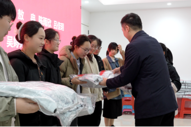 校团委书记王向东为研支团成员发放队服 研支团成员集体宣誓