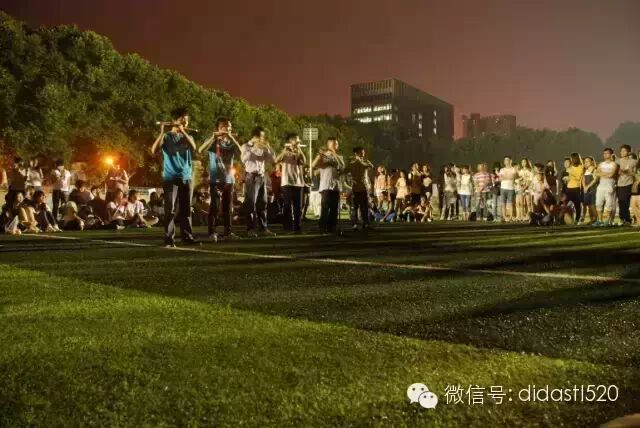 接下来的环节---社团表演,更加精彩。武术协会会员们力量与速度的结合,G舞团活力四射的舞蹈,吉他社温馨的弹唱《依然爱你》,民林社充满民族风味又不乏时代气息的《最炫小苹果》,笛箫社的悠扬曲调以及魔术爱好者协会令人惊喜的魔术表演都引得现场同学们掌声阵阵。大家围坐在草坪上,呼吸着同一片天空的气息,那一刻,真希望时间能够停驻。
