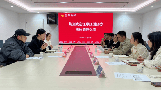 (通讯员 何清吟 张思媛 摄影 周星豪)10月22日,江岸区团区委书记刘文华一行来校调研,就校地合作事宜进行座谈。我校团委书记王向东,实践部主任何清吟,学院分团委书记代表参加座谈。
