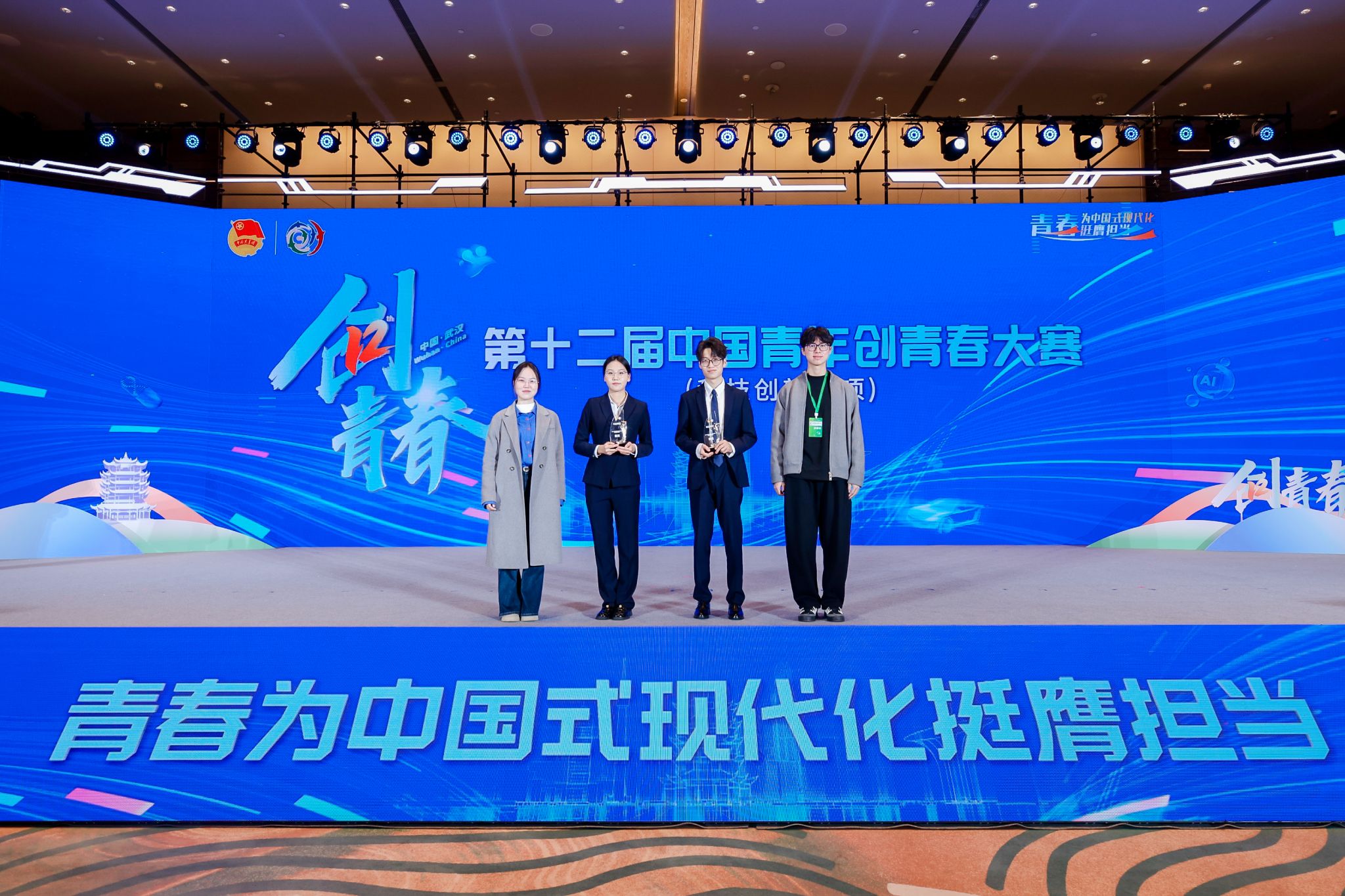11月18日至20日,第十二届中国青年创青春大赛(科技创新专项)决赛暨青年创新创业交流分享会在武汉圆满落幕。本次大赛以“青春为中国式现代化挺膺担当”为主题,由共青团中央、商务部、国家卫生健康委、国家税务总局和湖北省人民政府共同主办,吸引了全国9600余个项目团队同台竞技。经过激烈角逐,我校参赛团队脱颖而出,一举夺得3项全国银奖。